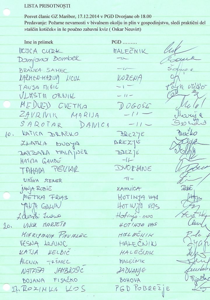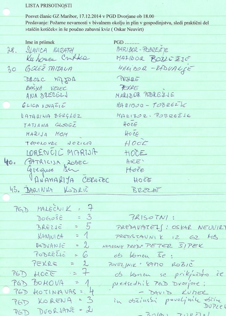 Tokrat smo mu prisluhnile članice GZ Maribor. Zbralo se nas je 43 in po pogledih udeleženk je bilo opazit velik interes. Vsakdanje teme so lahko zelo resne. A vsak delček preventive je boljši od trenutka nepazljivosti. Predavanje: »Požarne nevarnosti v bivalnem okolju in plin v gospodinjstvu« sta dopolnila še praktičen »taščin kotiček« in poučno zabavni kviz. Njegovo predavanje zavzame udeležencu vsa čutila in pozornost. Popestri ga z dobro šalo, a v vsaki šali je nekaj resnice. Taščin kotiček je poln vsakdanjih dogodivščin, ki se v praksi dogajajo. Namen kotička je ozaveščanje, kako pristopiti, če se zgodi…Predvsem pa, česa raje ne početi! Zaznamujejo pa ga tudi njegovi oskarizmi, ki so še kako resnični!