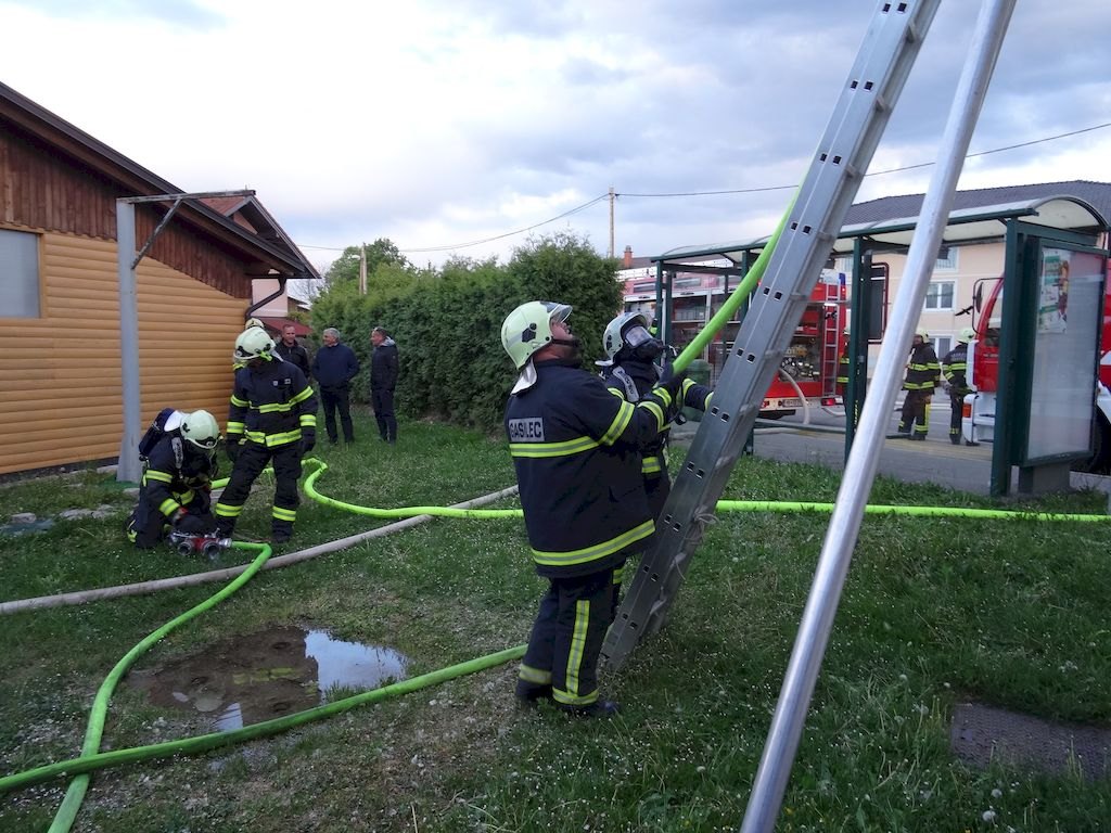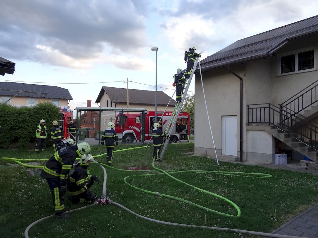 Izvedli smo osnovne operativne postopke: gašenje kletnega požara, dostop preko stopnišča v nadstropje in gašenje ostrešja preko lestve.