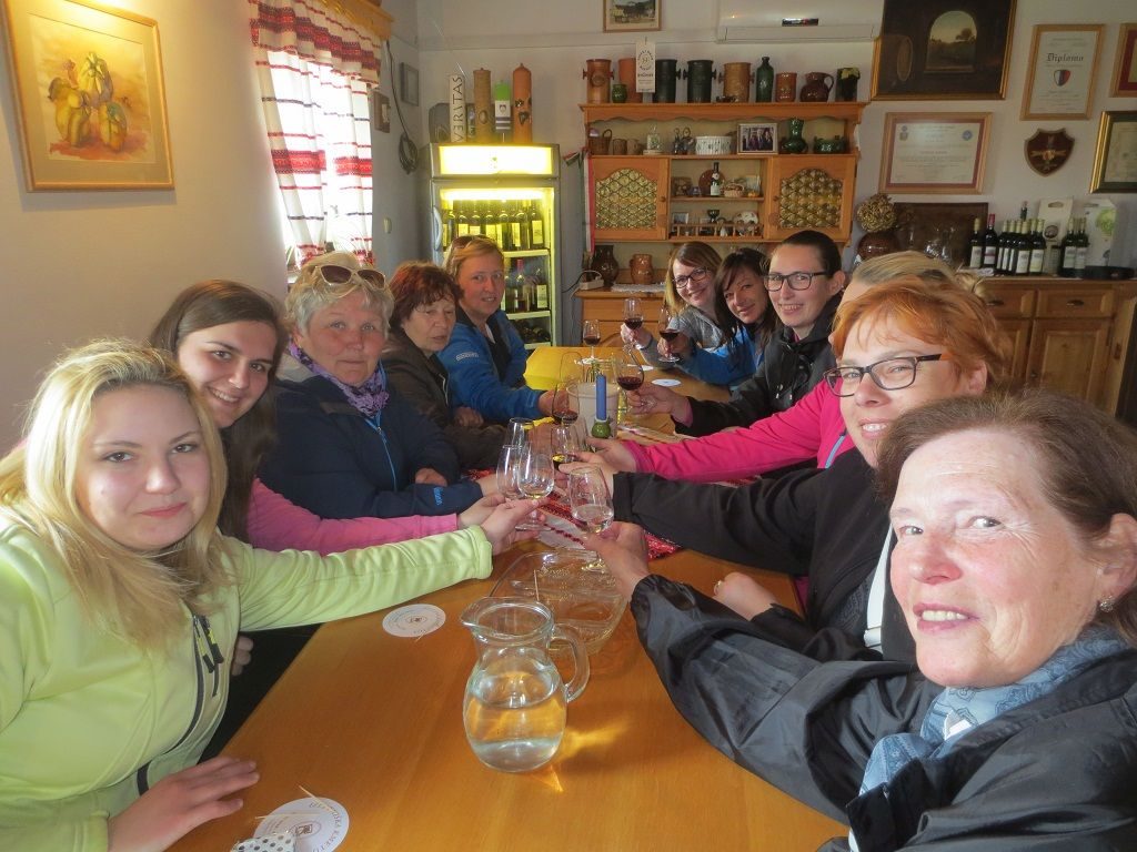 Polne vtisov smo si dušo in telo okrepile ob degustaciji vin v vinotoču Rožman. Naučile smo se nekaj novega, med drugim tudi kaj pomeni beseda BOR (vino). Zdaj bolje razumemo pomen našega mesta – MariBOR. Nekaj kilometrov naprej je Bukovniško jezero, ki je skrito sredi gozdov na obronkih Goričkega. Sprehodili smo se do pravljičnega Vidovega izvira, ki naj bi imel zdravilno moč. Prilegla se je kavica v prečudoviti naravi. Naslednja zanimivost je bil ogled podjetja Rosenbauer v Gornji Radgoni. So vodilni proizvajalci gasilskih vozil in opreme, ter specializiranih vozil za letališča. Gospod Gregor nas je prijazno sprejel in nas popeljal skozi oddelke njihovega podjetja. Vsaka je lahko videla kaj zanimivega in tega ne vidiš ravno vsak dan. V zahvalo smo jim podarili izvirno otroško risbico na temo Požar.