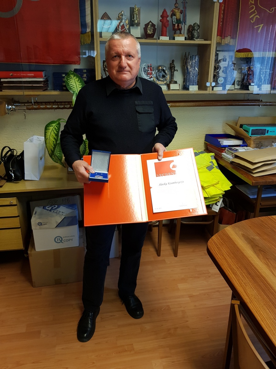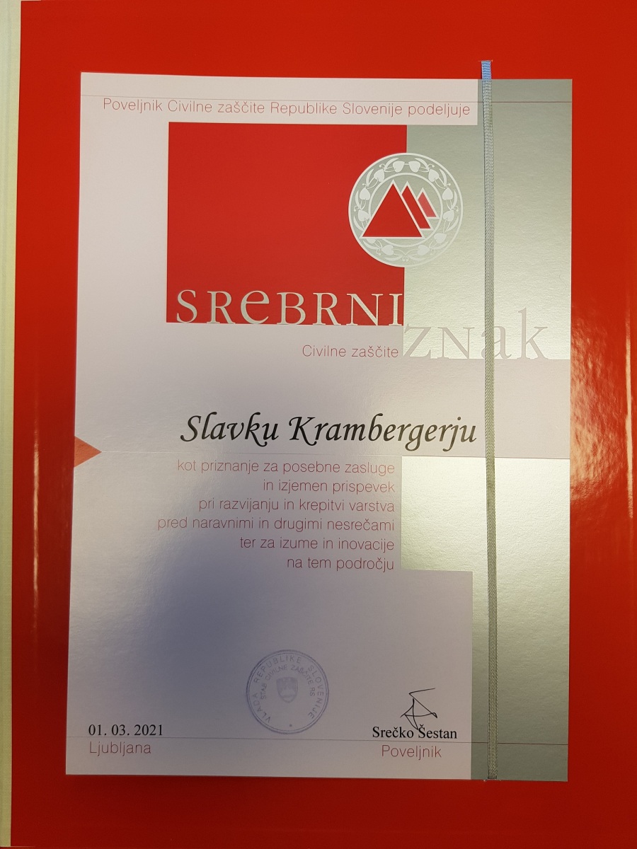 Iskreno čestitamo predsedniku GZ Maribor, tov. Slavku Krambergerju za prejetje Srebrnega znaka Civilne zaščite, ki ga podeljuje Civilna zaščita Republike Slovenije. Priznanje je bilo podeljeno za posebne zasluge in izjemen prispevek pri razvijanju in krepitvi varstva pred naravnimi in drugimi nesrečami ter za izume in inovacije na tem področju, na predlog Gasilske zveze Slovenije. Iskrene čestitke!