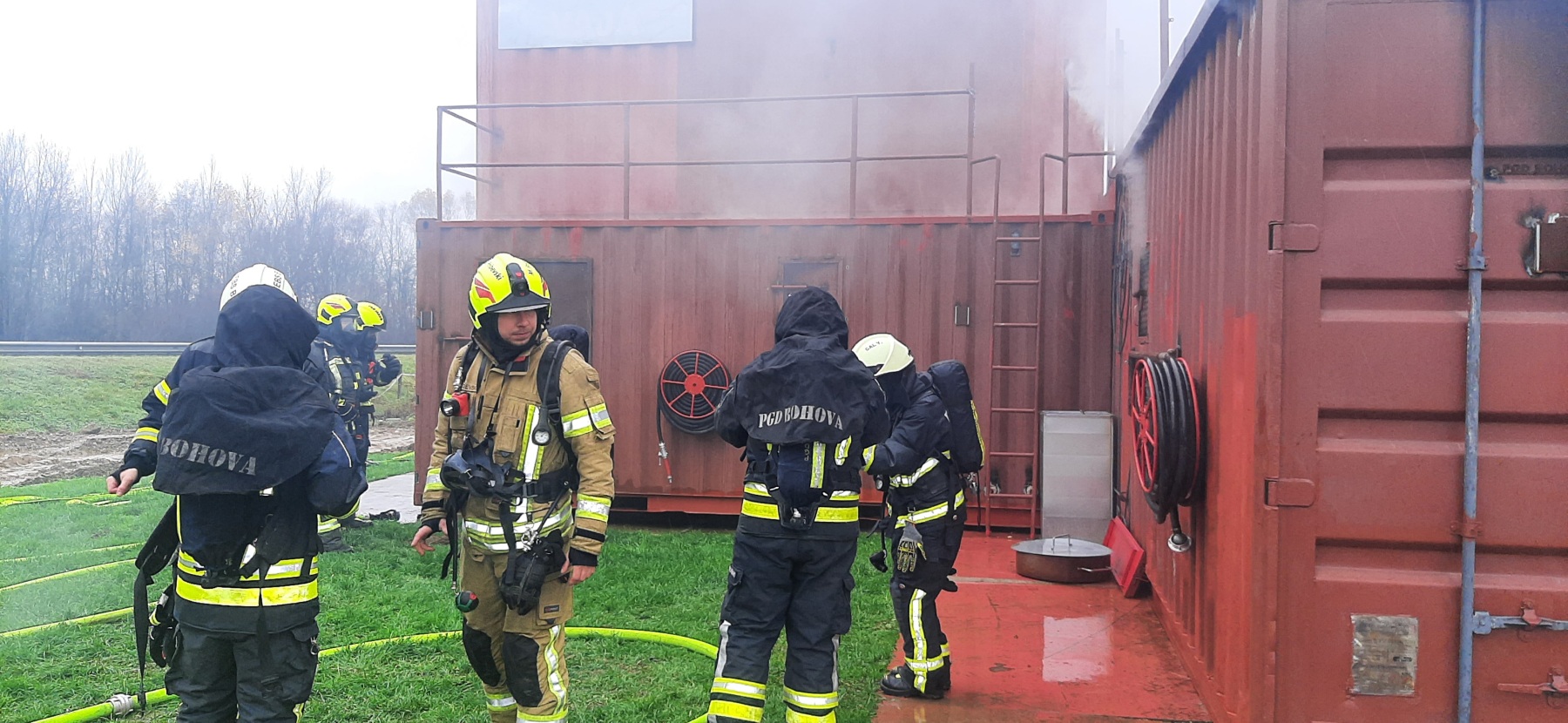 Na poligonu GPO Hoče-Slivnica, ki je v Bohovi, so tečajniki za nižje gasilske častnike opravili še zadnji ”preiskus znanja” pred praktičnim izpitom, ki bo na Igu. Sklop štirih, med seboj povezanih kontejnerjev, omogoča odlične operativne vaje. Notranji napadi preko lestve v nadstropja, vstope v kleti preko stopnišč, preko oken, vrat, gibanje v ozkih prostorih, preiskovanje, iskanje oseb – vse to in še več scenarijev si je možno zamislit. Bližnja cisterna omogoča prehode z IDA, vkopan 5m3 rezervoar vode pa omogoča delo z potopnimi črpalkami in že z nekoliko pozabljenimi PMB. Prav gotovo pa je največja dodana vrednost možnost gašenja notranjih požarov, saj ima kontejner tudi ”kurišče”.