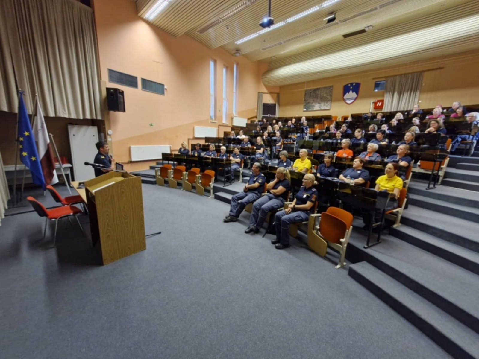 V drugem delu posveta se nam je pridružil predavatelj Sašo Komes, pribočnik predsednika na GZS Njegova tema je bila protokol s poudarkom na članicah. To je tema, katera je vedno najbolj pereča pri članih, ter še posebej pri članicah. Pridobile smo nekatera nova znanja in informacije o tem, kako je treba pravilno nositi svečano gasilsko unformo in pa tudi delovno gasilsko obleko. Kakšni čevlji so primerni, barve nogavic, speti lasje in podobno. Dve uri sta hitro minili. Vse kar smo slišale na tem posvetu bomo skušale prenesti na naše članice po društvih. Sama sem mnenja, da nam bo to zagotovo uspelo. Če ne letos, pa naslednje leto. Saj kot pravi pregovor: Vaja dela mojstra!